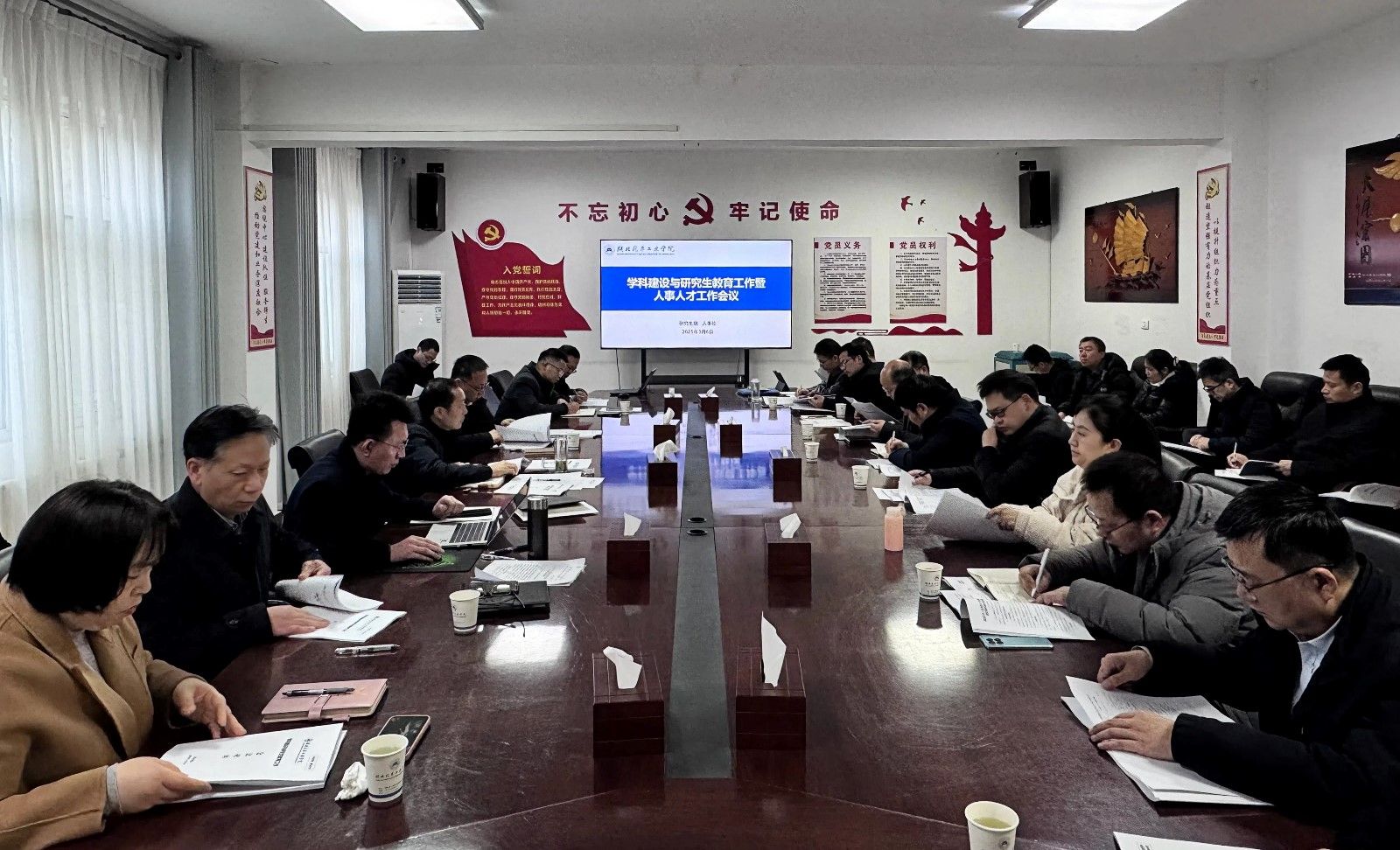 会上,研究生院传达学习了教育部、省教育厅关于2025年研究生招生复试录取工作会议精神,结合申博、ESI学科建设、学位点建设与评估、研究生教育改革、研究生复试录取等方面对2025年重点工作进行了安排部署。人事处结合人才与师资队伍建设、人才引进、职称评审、绩效工资改革等重点工作进行了政策解读和工作部署。(审稿 李建忠)