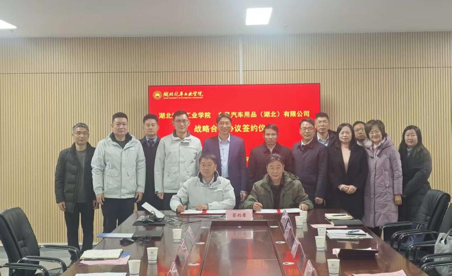 本网讯(文/图 田靖涵、朱炜、覃发律)1月19日上午,学校与东风汽车用品(湖北)有限公司框架合作协议签约暨“东风汽车用品创意设计研究中心”揭牌仪式在强国大楼606-2会议室举行。东风汽车集团跃创科技有限公司纪委书记童伟东、东风汽车用品(湖北)有限公司总经理柯尊鹏一行莅临我校调研交流。校党委常委、副校长王生怀参加会议。